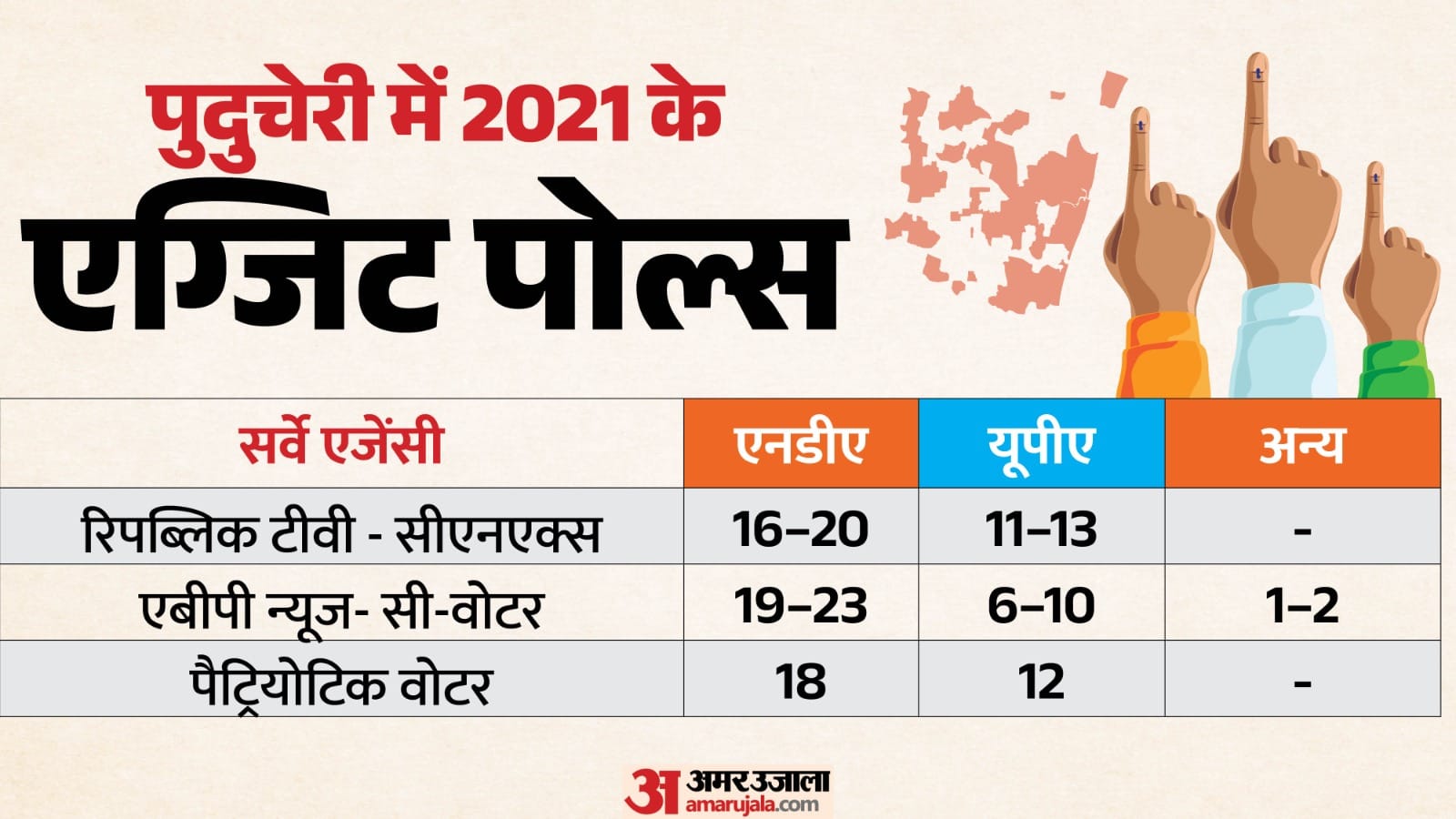 पुदुचेरी की 30 सदस्यीय विधानसभा में बहुमत के लिए 16 सीटों की आवश्यकता थी। इन एग्जिट पोल्स के अलावा, चुनाव से पहले आए अधिकतर ओपिनियन पोल्स ने भी स्पष्ट रूप से एनडीए को 16 से 27 सीटों के बीच पूर्ण बहुमत मिलने की भविष्यवाणी की थी।