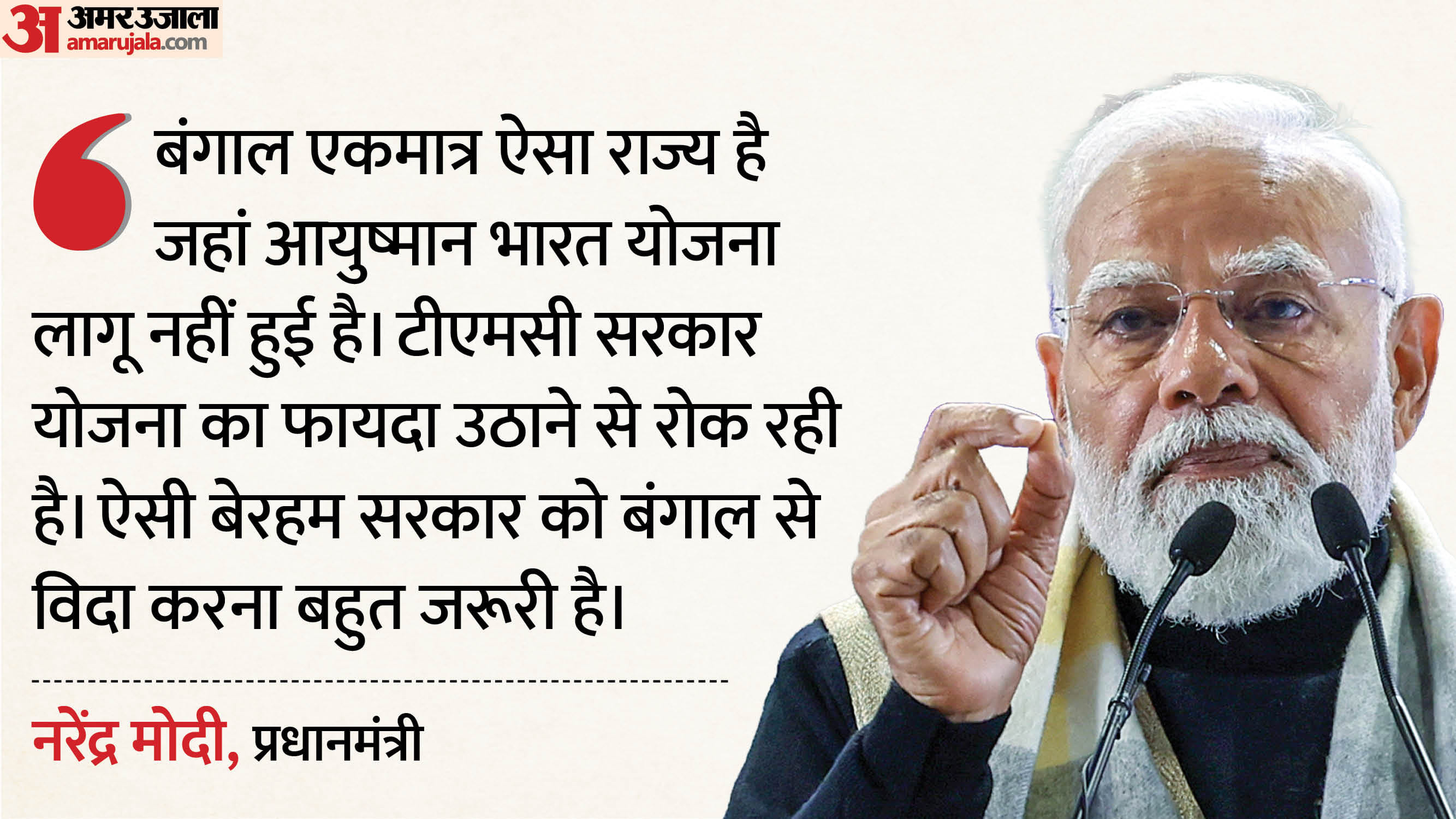 पश्चिम बंगाल के मालदा में रैली में प्रधानमंत्री मोदी ने केंद्र सरकार की योजनाओं, भाजपा के विस्तार और तृणमूल कांग्रेस सरकार पर तीखे हमलों के साथ बड़ा राजनीतिक संदेश दिया। पीएम मोदी ने कहा कि वह चाहते हैं कि बंगाल के हर गरीब परिवार के पास पक्का घर हो, हर जरूरतमंद को मुफ्त राशन मिले और केंद्र सरकार की सभी जनकल्याणकारी योजनाओं का पूरा लाभ गरीबों तक पहुंचे। उन्होंने कहा कि दुर्भाग्य से बंगाल में ऐसा नहीं हो पा रहा है।