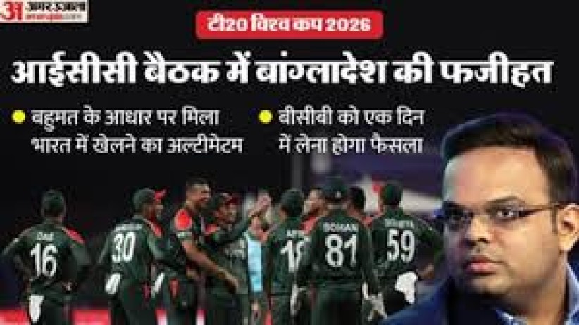 टी20 विश्व कप 2026 की शुरुआत से पहले हुए विवाद पर आज हुई आईसीसी बोर्ड की बैठक में बांग्लादेश को अल्टीमेटम दे दिया गया। उन्हें बहुमत के आधार पर भारत में खेलो या बाहर होने का निर्देश मिला है। इस पर बांग्लादेश को 24 घंटे में फैसला लेना होगा। दरअसल, बांग्लादेश क्रिकेट बोर्ड (बीसीबी) ने सुरक्षा का हवाला देते हुए अंतरराष्ट्रीय क्रिकेट परिषद (आईसीसी) से उनके मुकाबले भारत से श्रीलंका स्थानांतरित करने की मांग की थी। इसके अलावा उन्होंने आईसीसी को ग्रुप बदलने का भी विकल्प दिया था। हालांकि, अब आईसीसी ने बुधवार को हुई बैठक में उनकी सभी मांगों को खारिज करते हुए एक दिन में फैसला लेने का अल्टीमेटम दे दिया है