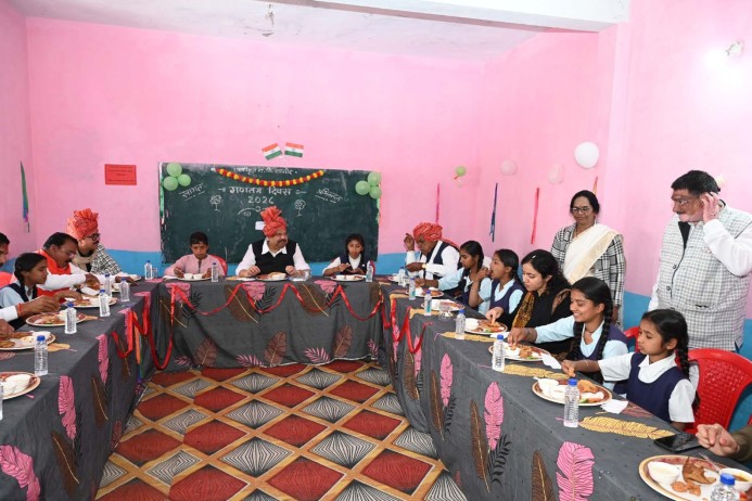 रतलाम 26 जनवरी। गणतंत्र दिवस के अवसर पर जिले के शासकीय स्कूलों में बच्चों को विशेष मध्यान्ह भोजन परोसा गया। गणतंत्र दिवस समारोह के मुख्य अतिथि सूक्ष्म, लघु एवं मध्यम उद्यम मंत्री मध्यप्रदेश शासन श्री चेतन्य काश्यप ने ग्राम सागोद के शासकीय माध्यमिक विद्यालय में बच्चों के साथ भोजन किया। मध्यान्ह भोजन कार्यक्रम में विधायक ग्रामीण मथुरालाल डामर, महापौर श्री प्रहलाद पटेल, जिला अध्यक्ष श्री प्रदीप उपाध्याय, श्री विप्लव जैन, कलेक्टर श्रीमती मिशा सिंह, पुलिस अधीक्षक श्री अमित कुमार, एडीएम डॉ. शालिनी श्रीवास्तव, एएसपी श्री राकेश खाखा, एसडीएम आर्ची हरित, जिला शिक्षा अधिकारी अनिता सागर, सरपंच कैलाश जी, उपसरपंच राजेश धाकड़, श्री सोनी, श्री अशोक धाकड़ सहित प्रशासनिक अधिकारियों एवं जनप्रतिनिधियों ने स्कूली बच्चों के साथ भोजन किया।