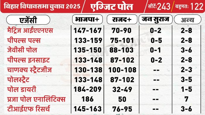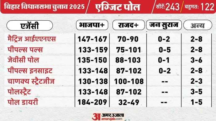 Exit Poll Bihar Election 2025 Live: राष्ट्रीय जनतांत्रिक गठबंधन को स्पष्ट बहुमत