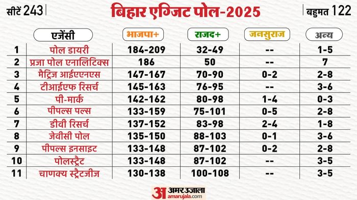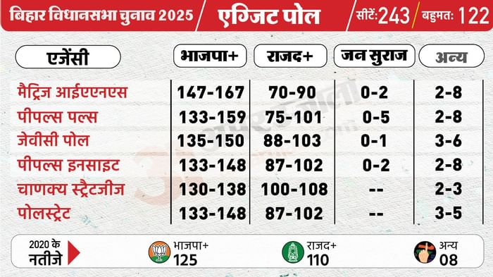 Bihar Exit Polls Result Live: सभी एग्जिट पोल एजेंसियों का आकलन, एनडीए को स्पष्ट बहुमत...