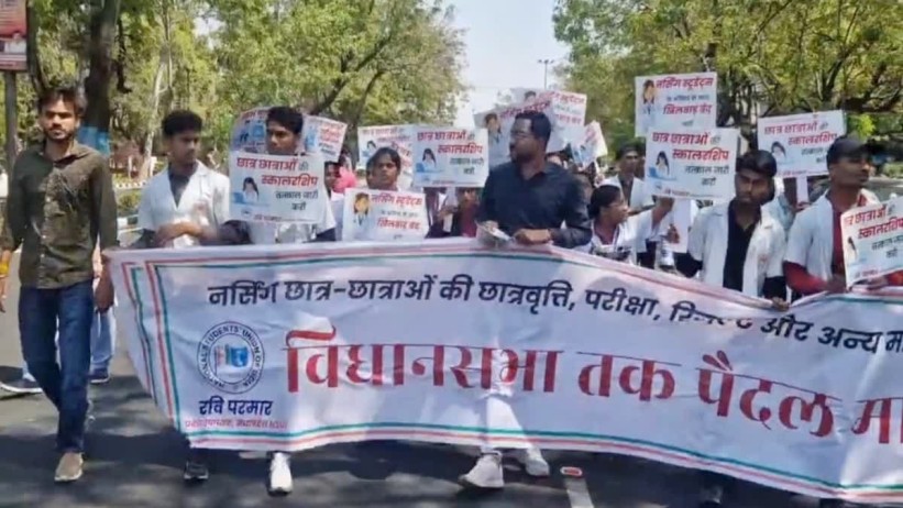 भोपाल। राजधानी के पॉलिटेक्निक चौराहे पर नर्सिंग छात्रों ने आज प्रदर्शन किया। प्रदेश के विभिन्न जिलों से पहुंचे सैकड़ों छात्र-छात्राएं कई वर्षों से स्कॉलरशिप न मिलने और कॉलेजों में परीक्षा आयोजित न होने के विरोध में सड़कों पर उतर आए। अनुसूचित जाति, जनजाति और अन्य पिछड़ा वर्ग से आने वाले छात्रों ने सरकार और प्रशासन के खिलाफ नारेबाजी की और अपनी मांगों को जल्द पूरा करने की गुहार लगाई।