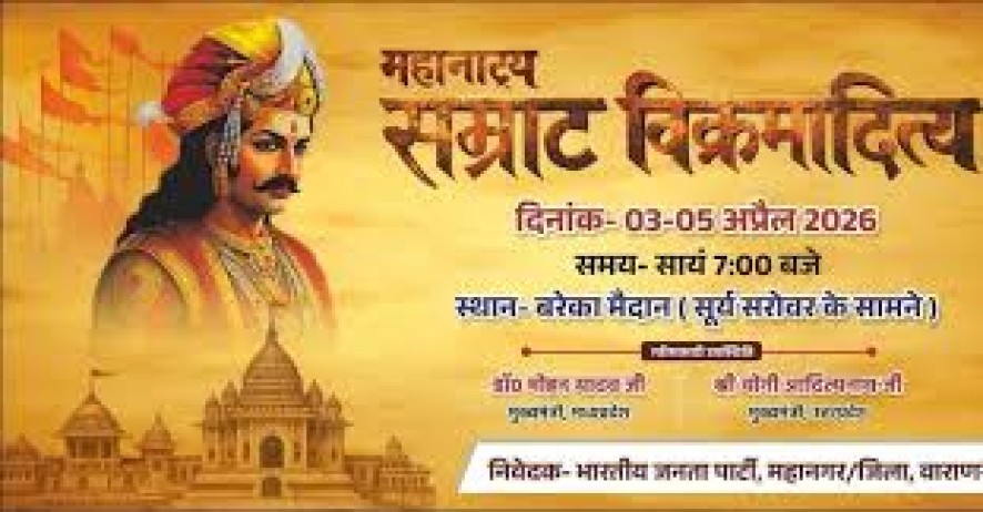 वाराणसी के बी.एल.डब्ल्यू. मैदान में आगामी 3 से 5 अप्रैल, 2026 (विक्रम संवत् 2083, वैशाख कृष्ण पक्ष) तक भारत के स्वाभिमान और विकास की गाथा का भव्य उत्सव मनाया जाएगा। मध्यप्रदेश और उत्तर प्रदेश सरकार के संयुक्त तत्वावधान में आयोजित इस त्रि-दिवसीय कार्यक्रम में महानाट्य 'सम्राट विक्रमादित्य' का ऐतिहासिक मंचन किया जाएगा।
