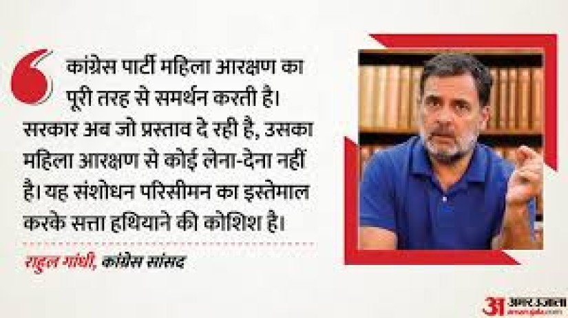 कांग्रेस नेता राहुल गांधी ने सरकार के संविधान संशोधन प्रस्तावों को परिसीमन और गरिमैंडरिंग के जरिए सत्ता हथियाने का प्रयास बताया है। उन्होंने महिला आरक्षण पर समर्थन जताते हुए राज्यों के साथ अन्याय का आरोप लगाया।