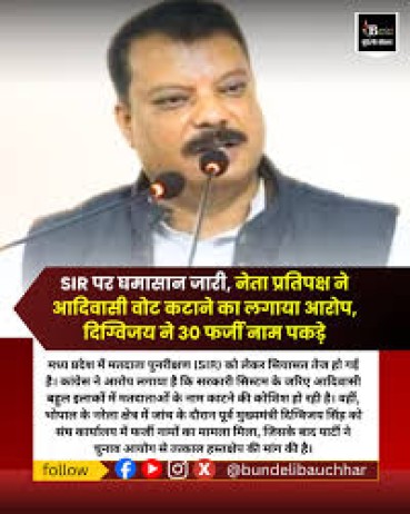 मध्य प्रदेश में मतदाता पुनरीक्षण (SIR) को लेकर सियासत तेज हो गई है। कांग्रेस ने आरोप लगाया है कि सरकारी सिस्टम के जरिए आदिवासी बहुल इलाकों में मतदाताओं के नाम काटने की कोशिश हो रही है। वहीं, भोपाल के नरेला क्षेत्र में जांच के दौरान पूर्व मुख्यमंत्री दिग्विजय सिंह को संघ कार्यालय में फर्जी नामों का मामला मिला, जिसके बाद पार्टी ने चुनाव आयोग से तत्काल हस्तक्षेप की मांग की है।