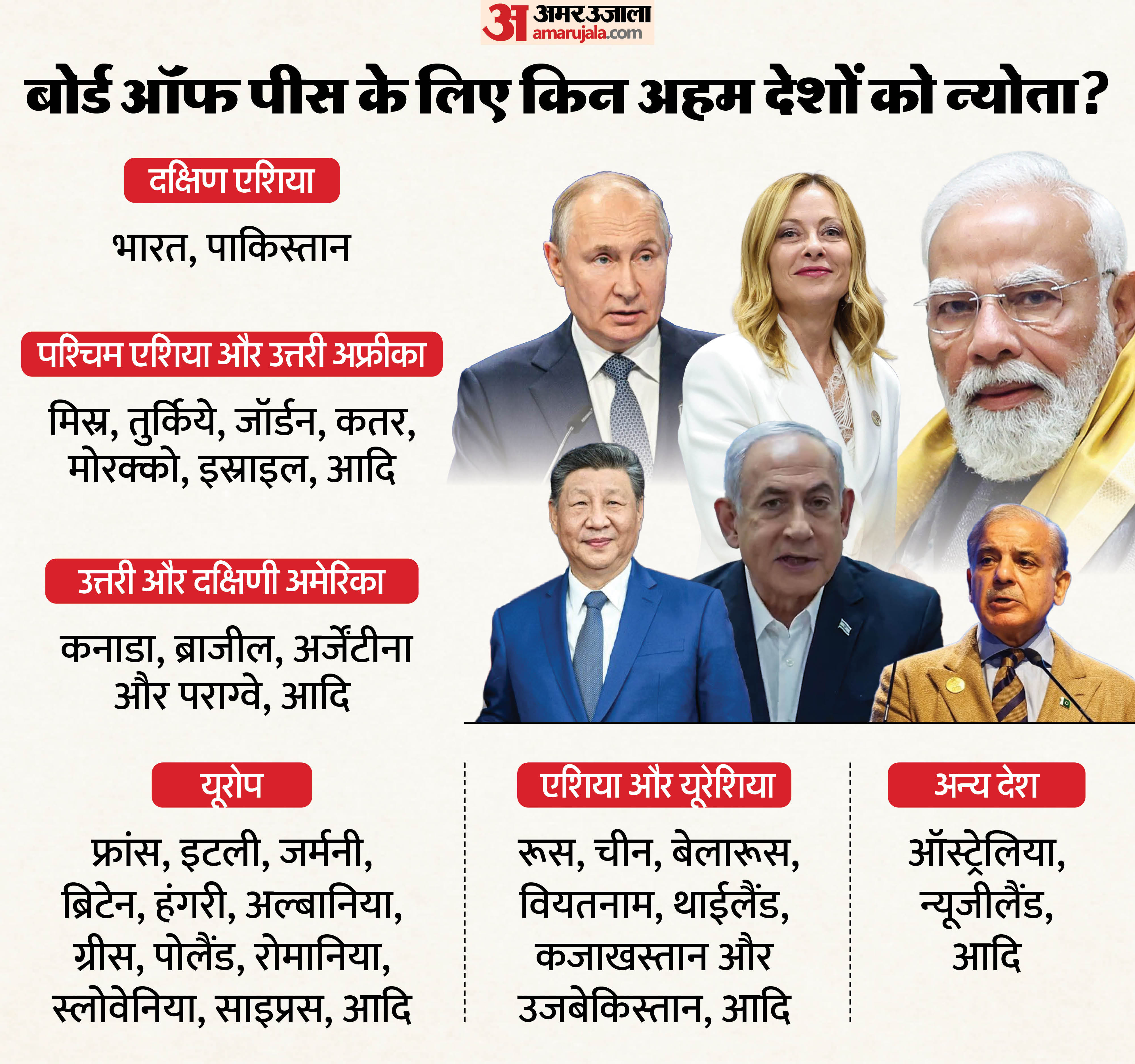 इस्राइल-फलस्तीन के बीच स्थायी शांति लाने के लिए अमेरिका अलग-अलग देशों के नेताओं को 'गाजा बोर्ड ऑफ पीस' में शामिल न्योता भेजा जा रहा है। इनमें वह देश भी शामिल हैं, जो पारंपरिक तौर पर या तो कूटनीतिक मामलों में तटस्थ रहे हैं या फिर दूसरे देशों में दखल की रणनीति का विरोध कर चुके हैं।